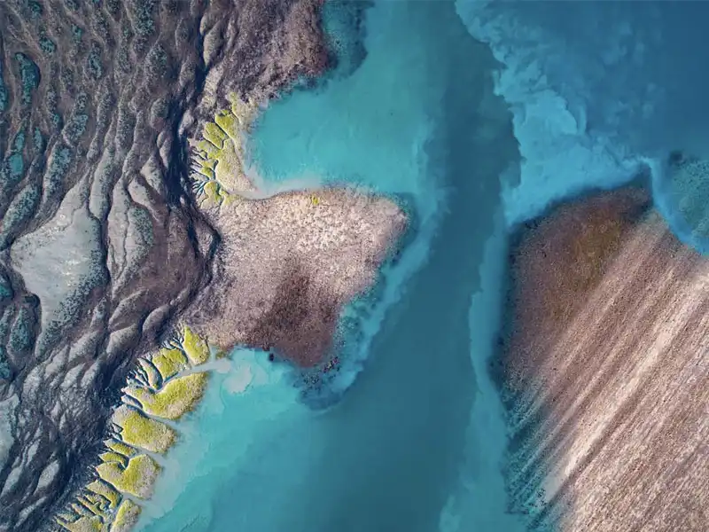 Our first spectacular sight: the sweeping Derby mudflats. These ever-changing tidal plains are teeming with life—keep an eye out for saltwater crocodiles basking in the sun! The massive tides (some of the biggest in the world!) sculpt mesmerizing patterns across the mudflats that stretch to the horizon.
