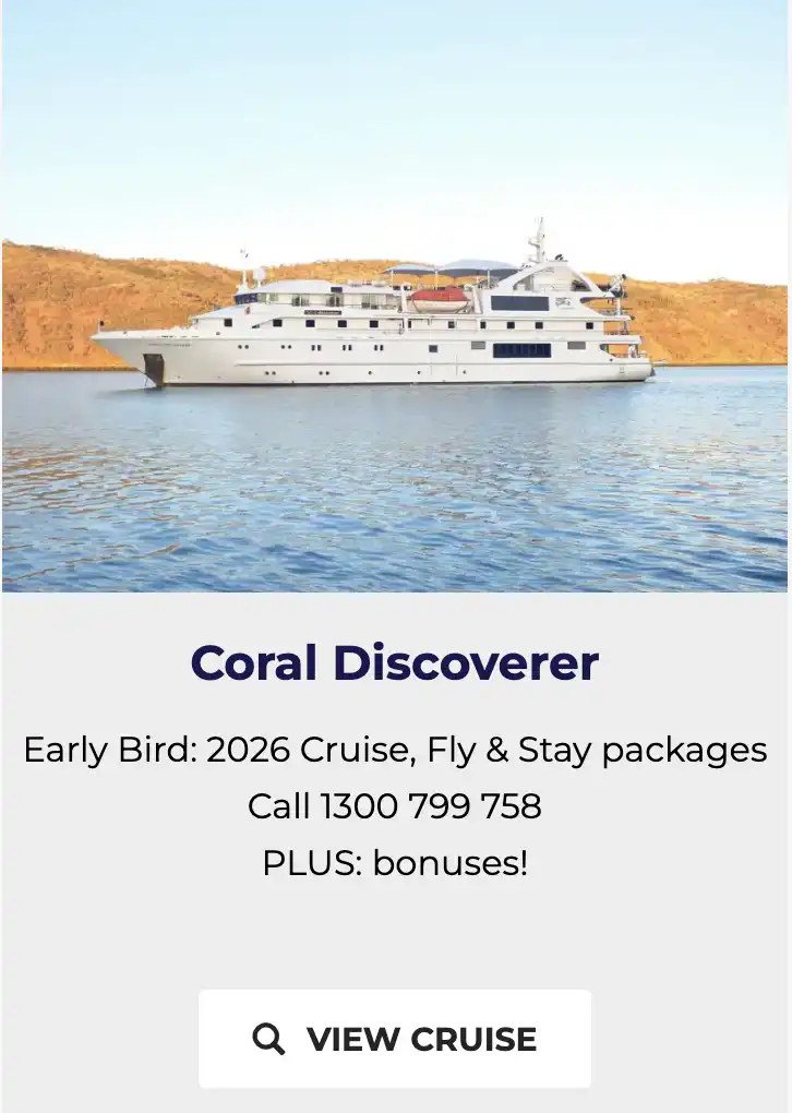 List of Kimberley cruise vessels, boats, cruise ships. Broome to Darwin. Kimberley Cruise ships enquiries call 1300 799 758